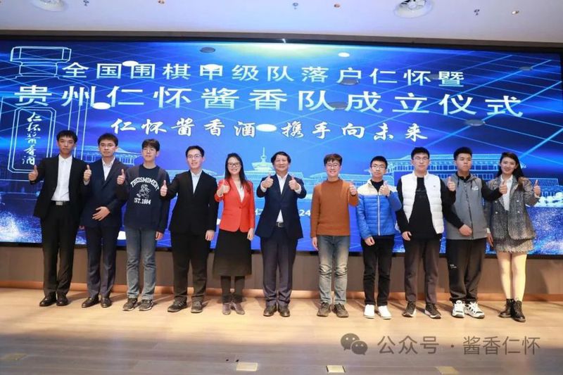 1月9日,全国围棋甲级队落户仁怀暨贵州仁怀酱香围棋队成立仪式在仁怀温泉酒店举行,贵州目前唯一一支围棋甲级联赛队伍——贵州仁怀酱香队正式成立。