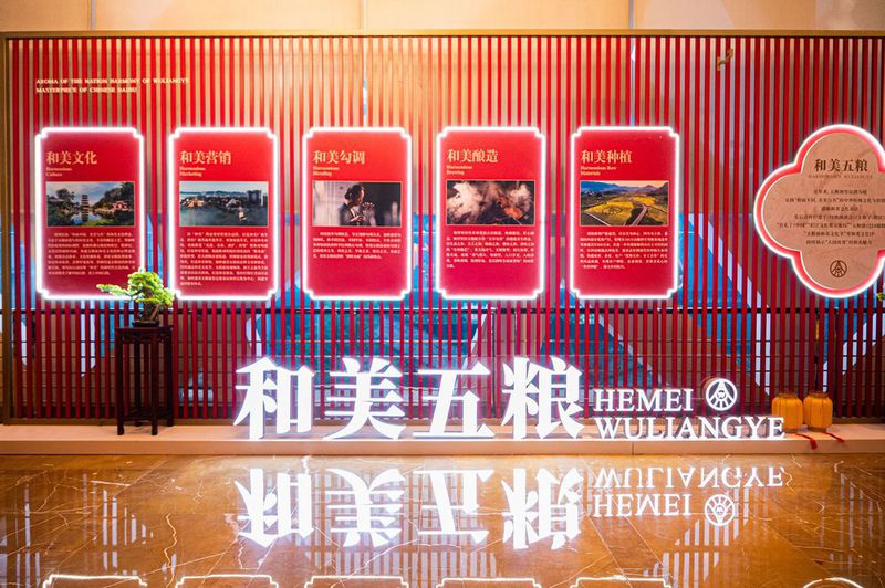 在根植和美板块,五粮液用新中式建筑形式诠释了“和而不同 美美与共”的传统哲学思想、深度解释了和美五粮品牌内涵,同时向外界分享传递五粮液和美文化节、五粮液12·18超级粉丝节、中国西湖情·五粮液玫瑰婚典、《中华文脉 经典围读会》《上新了·故宫》等文化IP;以《丝路山水地图》为基,造景展示“和美中国”产品画卷,彰显五粮液立足华夏,放眼世界的发展格局。