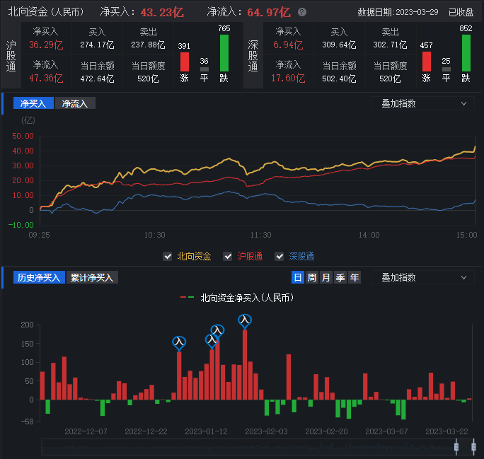 3月29日,A股三大指数涨跌互现,两市成交额略有萎缩,近5个交易日首次低于万亿元规模,北向资金全天净买入超40亿元。业内人士表示,北上资金开始回流,一旦后续持续加仓,那么就会给A股带来新的边际增量买盘。