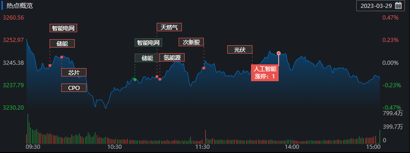 3月29日,沪深两市窄幅整理。截至收盘,上证指数跌0.16%报3240.06点;深证成指涨0.13%报11579.91点,创业板指涨0.09%报2371.19点,A股合计成交额9815.96亿元,较上个交易日下降2.28%;北向资金全天净买入43.23亿元;其中沪股通净买入36.29亿元,深股通净买入6.94亿元。总体上看,下跌个股数量居多,有3346只下跌,1550只上涨。