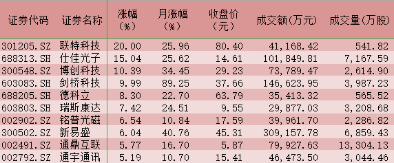 从概念板块来看,东方财富371个概念板块中,99个上涨。其中,CPO概念领涨,涨幅达5.46%,MLOps概念涨幅居第二位,涨幅达4.70%,另有算力概念、F5G概念、氦气概念等3个概念板块涨超3%,分别为3.47%、3.42%、3.09%。下跌方面,转基因、CRO、粮食概念、供销社概念等4个概念板块均跌超2%。