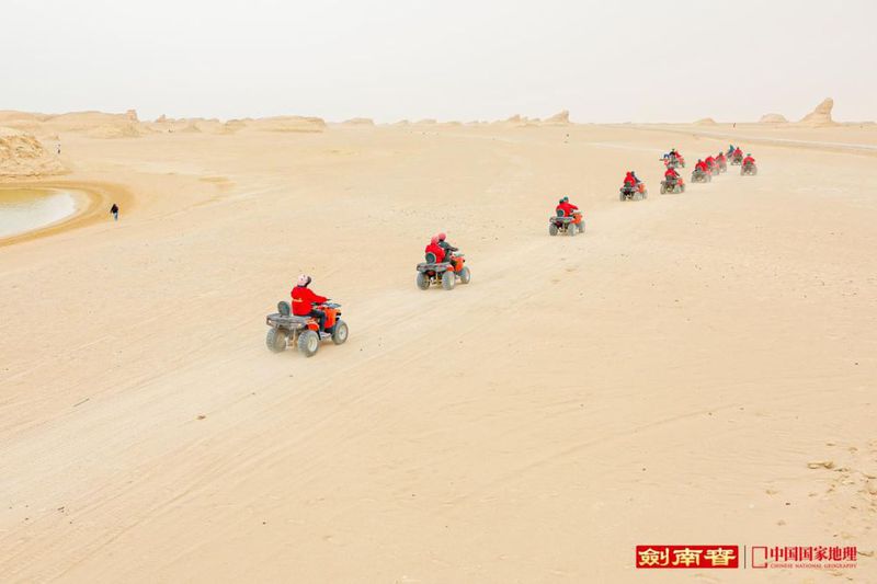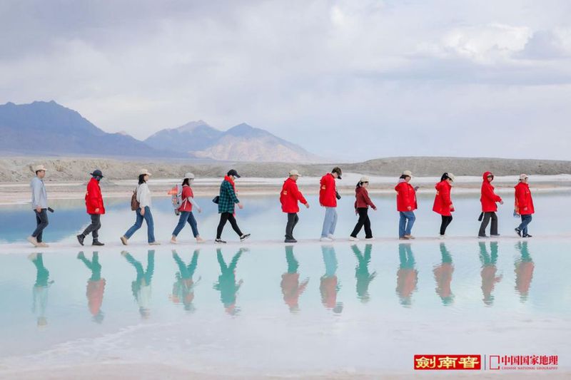 在中国最大的盐湖,也是世界上最著名的内陆盐湖之一的察尔汗盐湖,身着红色团服的成员们争相拍照留念,如一团团火焰在湖边绽放;大柴旦翡翠湖碧绿幽深,自带神秘气息;有“中国的马尔代夫”之称的西台吉乃尔湖宛如世外桃源;穿越俄博梁,进入乌素特雅丹地质公园,成员们目睹了世界最大、最壮观的雅丹群落。高大雄伟的雅丹土丘遍布于湖泊之中,形成全球最早的水上雅丹景观。