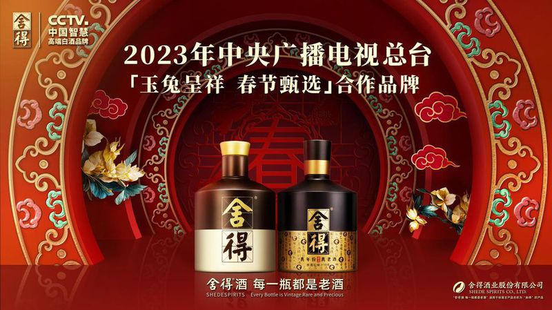 在今年春晚上,舍得酒以“2023 年中央广播电视总台‘玉兔呈祥 春节甄选’合作品牌”的身份,向全球华人送上新春祝福,并以多种形式传递中国智慧、亮出品牌高端形象、输出老酒价值,成为2023年开年中国酒企中最具活力与品牌张力的代表。