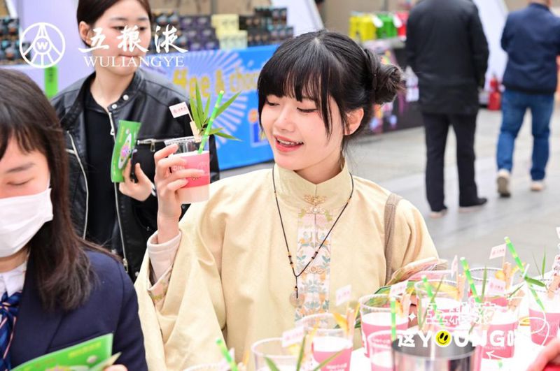 现场设置了合影打卡、转盘迷宫、弹走焦虑、魔力套圈等趣味互动小游戏,还为观众们免费提供五粮液新推出的五谷罗尼鸡尾酒、五粮气泡酒等创意饮品。曾风靡大运会、金熊猫盛典等的五粮液“和美中国”系列特调鸡尾酒也免费供应。