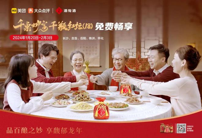 临近春节,酒鬼酒以“馥郁香”为线索,联合美团、大众点评免费为长沙、吉首、岳阳、株洲、怀化五城酒友送出千桌团圆宴。