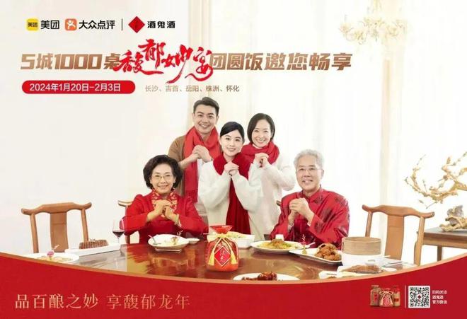 在此基础上,酒鬼酒通过与美团和大众点评合作打造的千桌团圆宴免费送春节营销事件,就是撬动大本营市场的“锚”,不仅围绕团圆宴场景实现了消费者触达,更以场景化与消费者高频沟通,切实用真心回馈粉丝,实现深度共鸣。