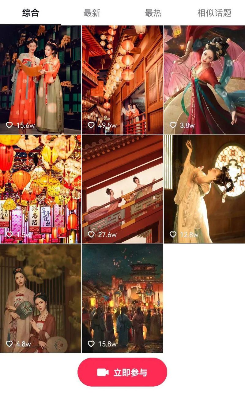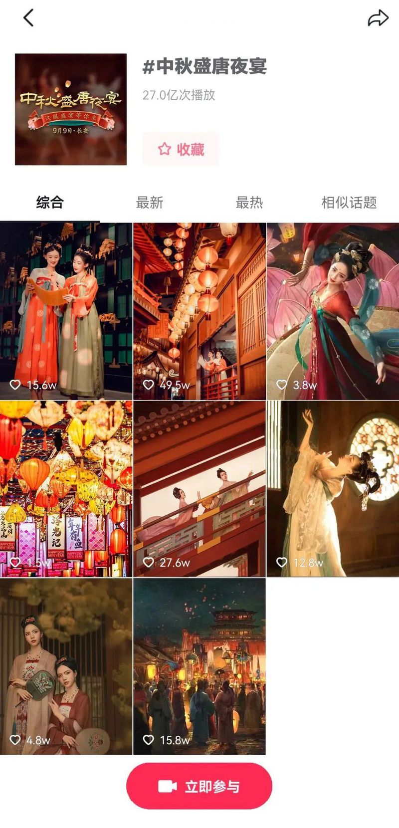 打开抖音app并搜索话题:#中秋盛唐夜宴#
