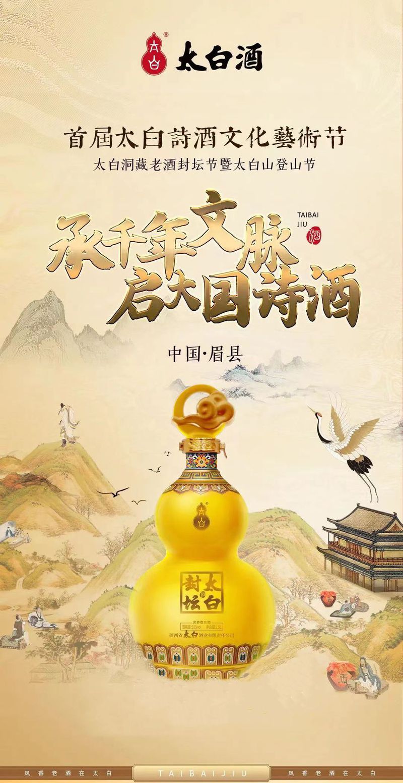 近年来,社会经济发展与消费理念的变化,让消费需求迈入从物质属性向“物质+精神”转变的消费新时期。在此基础上,构建消费者认同的话语体系,以及打造独具个性价值标签的表达模式,成为品牌博弈的重点。糖酒快讯获悉,太白酒业将以文化为媒,凝聚老酒品质内核,展现品牌雄心,举办以“承千年文脉·启大国诗酒”为主题的首届太白诗酒文化艺术节——太白洞藏老酒封坛节,与文化名人、行业专家,品凤香回味悠长、鉴太白老酒醇香。借这一场高规格、高品味、高标准的诗酒文化盛宴,不仅将助力太白酒业讲好品牌故事、提升品牌格调、强化品质认知,深度传递凤香老酒独特品味与魅力,也将倾力展现太白酒业“二次创业”的发展决心与信念。酒,是一方山水灵魂的凝聚,是情绪的表达,是文化的承载。它活在不断延续与传承的华夏文化之中,同时也借文化的力量传扬开来。“如果要理解中国文化,一定绕不开那杯醇厚而芬芳的酒香。”这一次,借助“首届太白诗酒文化艺术节”,与会嘉宾也将亲历亲证深厚的凤香底蕴与丰满的太白文化。以盛唐集市为场景,以太白大唐穿越之旅·诗酒十境——“大唐盛景、太白遗风、太白五艺、太白三藏、太白四韵、鸿运之约、福禄之坛、酒食风味、稀世臻酿、太白山晓”为亮点,太白酒业让盛唐文化与太白遗风在融合中交相辉映,与会嘉宾在领略诗酒交融的风雅、品味洞藏封坛的享受和攀向顶峰的释然后,深度感知这场诗酒文化游的曼妙。太白酒业首届太白诗酒文化艺术节,是诗与酒交融的品味盛宴。穿越至梦幻般的“大唐盛世”,品味太白酒6000年的历史文化,感受太白酒的“五艺、三藏、四韵”,在酒、食、诗的交融中,得到身心的满足与慰藉。太白酒业品牌总监万娜表示:我们都知道盛唐时期,是非常鼎盛的一个时期。正是因为唐朝包容、开放、容错的精神内核,各方文明得以交流、碰撞、大胆创新,造就了盛唐的万国来朝。