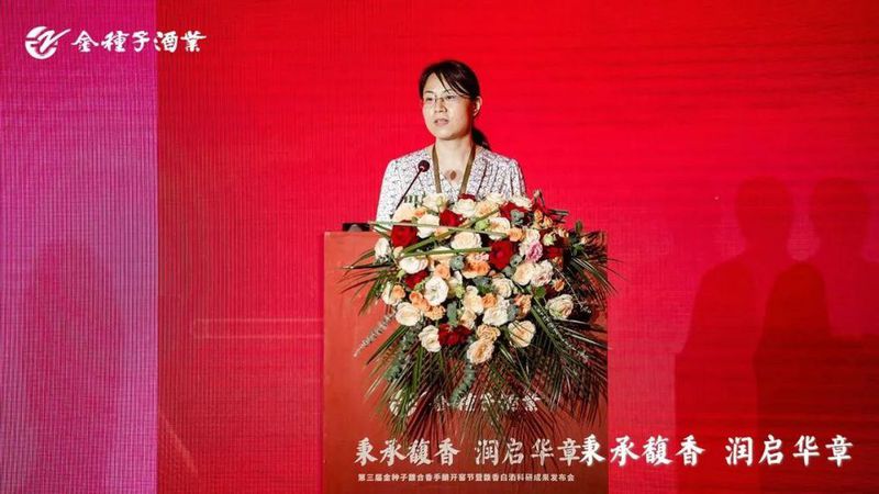 在馥香白酒科研成果发布会现场,江南大学生物工程学院酿造微生物与应用酶学研究室吴群重磅发布了馥香白酒科研成果,从工艺独特性、品质独特性、淮北平原生态独特性等进行详细解读,凸显了金种子馥合香卓而不群的“好酒”品质基础,并笃定表示金种子馥合香是能给予消费者“多粮复合香、焦香、醇厚感、回味”等丰富感官特征的品质好酒。