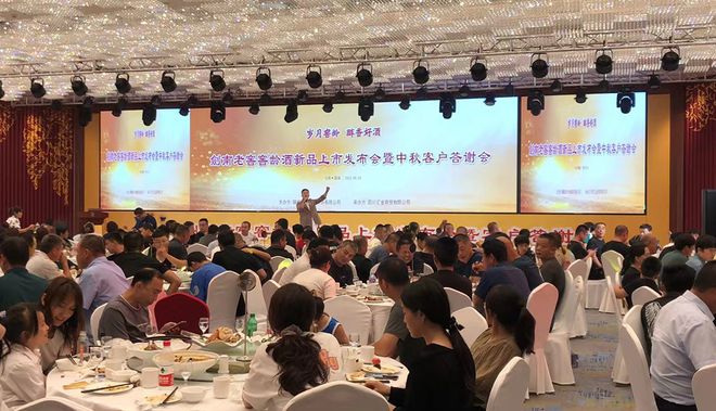 8月下旬,剑南老窖窖龄酒新品上市发布会暨中秋客户答谢会在山东聊城举行,原定45桌的经销商客户扩容至60桌,还有不少前来品鉴的客户,只能在自助餐区域品鉴。