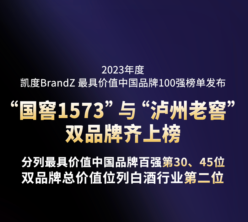 在本次发布的榜单中,“国窖1573”品牌和“泸州老窖”品牌双双上榜,这得益于泸州老窖公司过去一年里的高质量稳健发展,坚持守正创新,不断丰富打造品牌矩阵,在激烈的市场竞争中保持定力,彰显出良好的品牌韧性和抗风险能力。