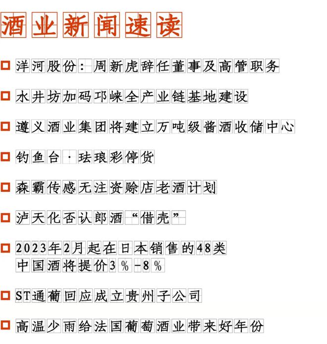 2023年2月起在日本销售的48类中国酒将提价3%-8%