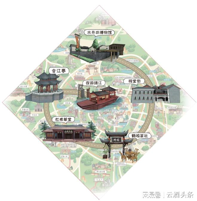 植入酒中美学,展示城市文脉。酒旅融合的核心是文化,而水井坊作为“活着”的博物馆,体现着由空间技艺与生活之美交织的“酒中美学”,是成都600余年人文的荟萃。游客可以从水井坊博物馆开始了解成都,再游览杜甫草堂,鹤鸣茶社等景点,多维度深入感受天府文化。