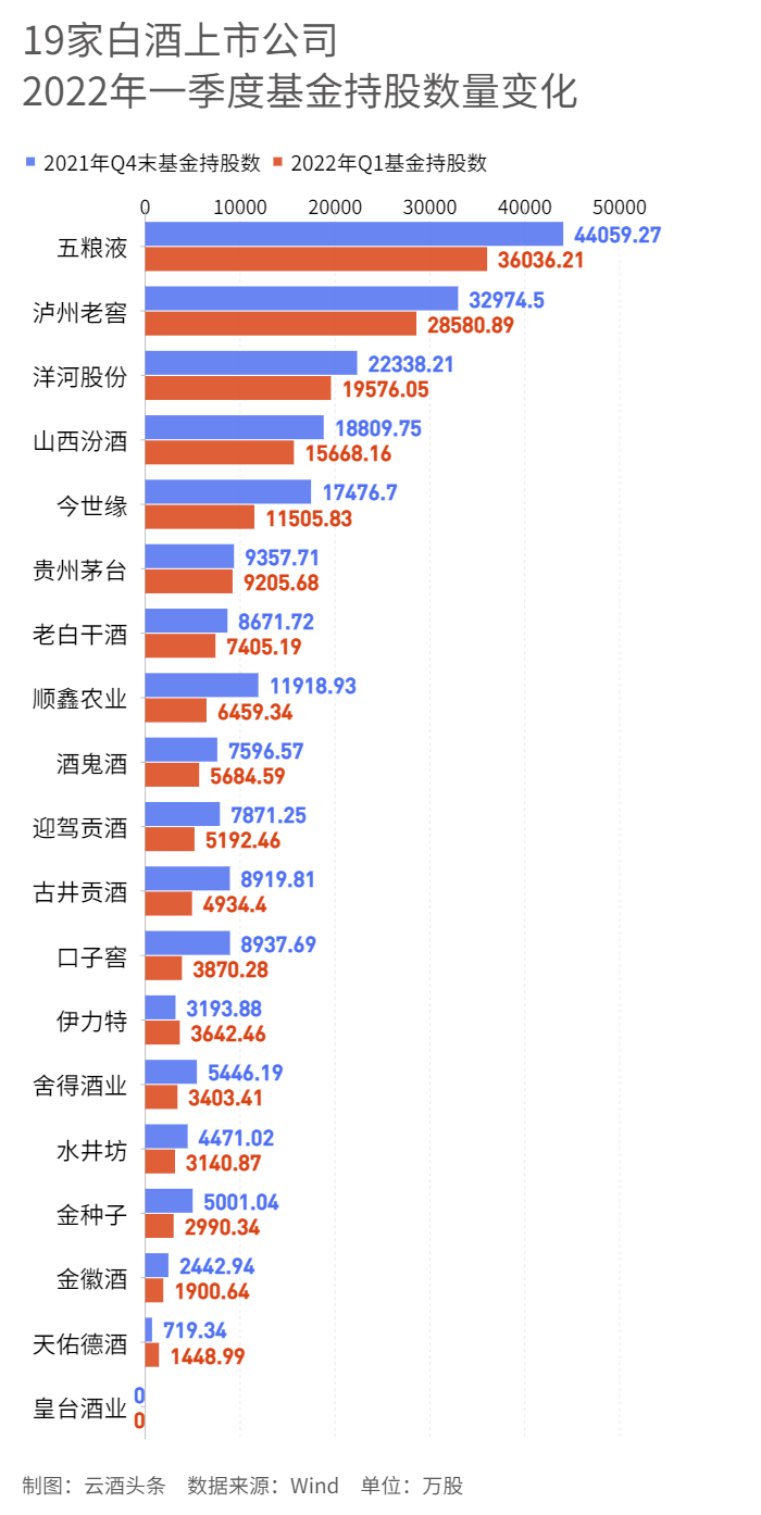 尽管基金前十大重仓股有4只白酒股,但是从持股数上看,2022年一季度多只基金都进行了不同程度地减持。