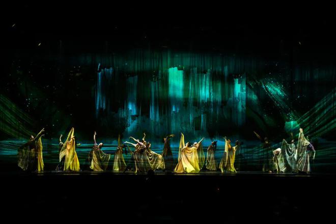 在徐徐流淌的音乐中,场内的观众也随之安静,目光一直被舞台上的舞蹈、诗歌、书法、器乐等吸引,沉浸在由水井坊出品,中国东方演艺集团、北京东方新感觉音像出版社创演的大型多媒体舞台剧《醉锦图》中。