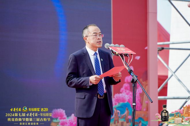 古井集团党委副书记、总裁李培辉在致词中表示,古井自2018年首创桃花春曲节,至今已举办七届。此次桃花春曲节暨古粉节活动,古井将顺天时,传承非遗技艺;承地利,探源酿酒地理;聚人和,凝聚亳商合力。通过持续开展系列文化活动,将桃花春曲节打造成为古井贡酒乃至亳州市的一项精品文化活动。