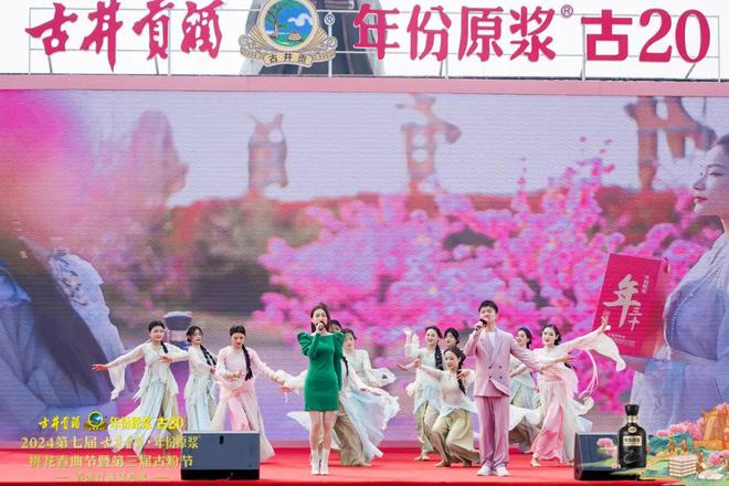 3月29日—30日,2024第七届古井贡酒·年份原浆桃花春曲节暨第三届古粉节在古井酒神广场启幕。