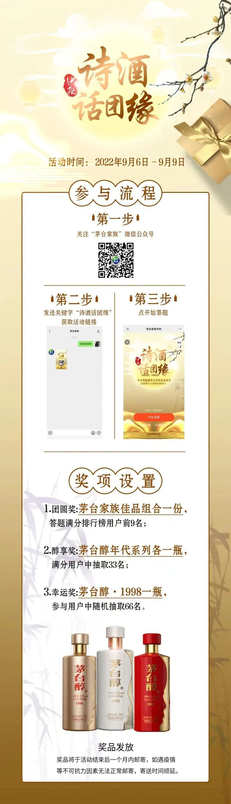 今年中秋节,茅台家族以团“缘”话团圆,开启中秋答题赛,其中有诗,更有酒。