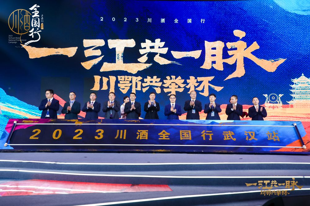 4月21日,以“一江共一脉·川鄂共举杯”为主题的2023“川酒全国行”武汉站活动暨线上推广活动正式启幕。本次活动由四川省经济和信息化厅指导,泸州市人民政府、四川中国白酒金三角酒业协会主办,泸州市酒业发展促进局、泸州老窖股份有限公司承办,五粮液、剑南春、郎酒、舍得、水井坊协办。