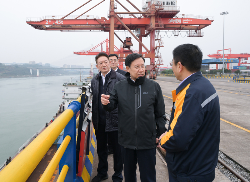 2023年2月15日,省委书记王晓晖到中国(四川)自由贸易试验区川南临港片区调研,详细询问片区建设运行、制度创新等情况,实地察看泸州港的建设运营情况。