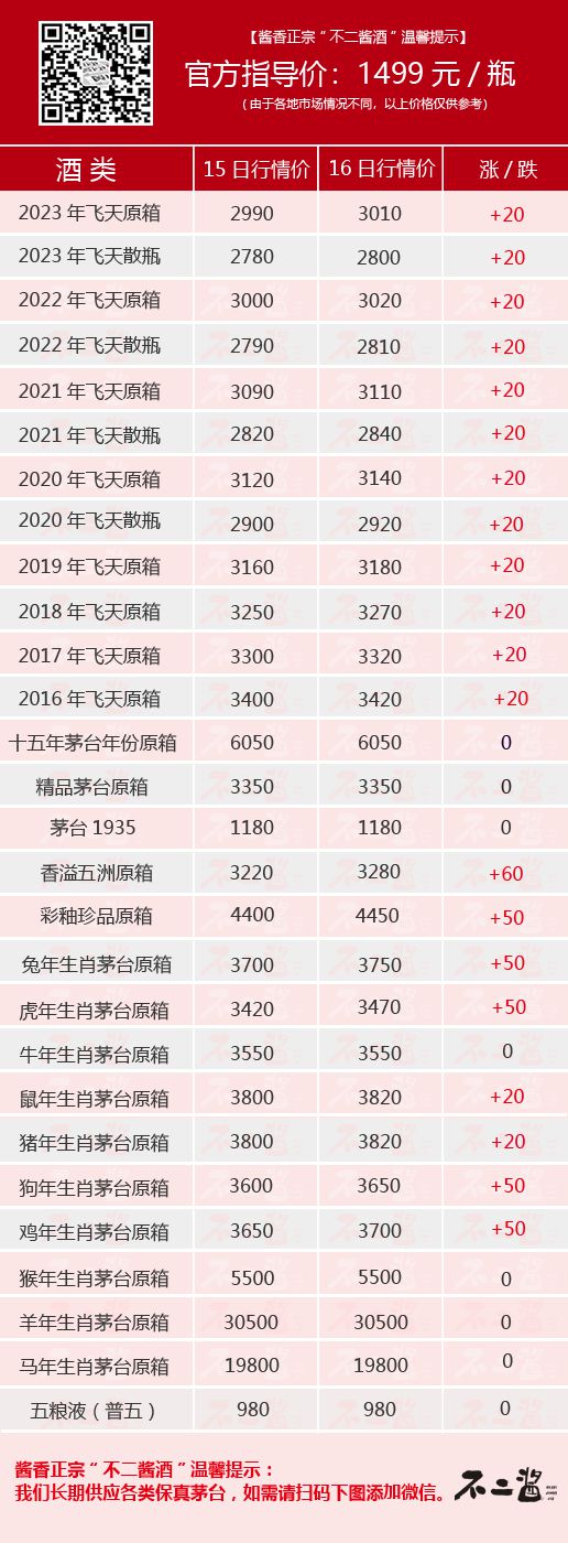 自春节以来,茅台酒行情价全线红,疯狂上涨。飞天系列涨、生肖系列中虎年、牛年、鼠年等涨、十五年、精品、彩釉珍品、香溢五洲均涨了超百元。其中,香溢五洲更是从3030元/瓶暴涨到现在的3280元/瓶;彩釉珍品从4310元/瓶涨到到4450元/瓶。