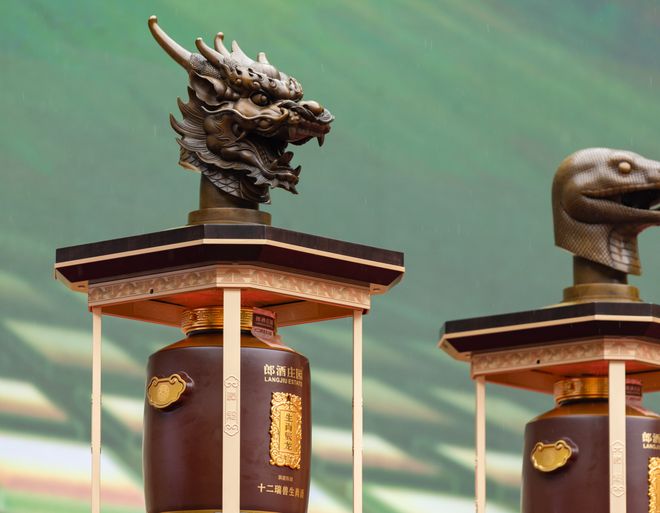 此外,倾注匠心的“郎酒庄园十二生肖瑞兽酒”也在大典上亮相。郎酒庄园十二瑞兽生肖酒的青铜兽首造型溯源圆明园海晏堂十二兽首铜像,以青铜浮雕精錾法纯手工錾刻,所成每一尊兽首都是独一无二的艺术“孤品”。微酒进一步获悉,该产品精选不超过产量9%的特级原酒,洞藏20年以上的基酒比例不低于80%,再加洞藏50年陈年老酒及不同风格的调味酒精心勾调,每坛36斤,限量发售,建议收藏价为270000元每坛。
