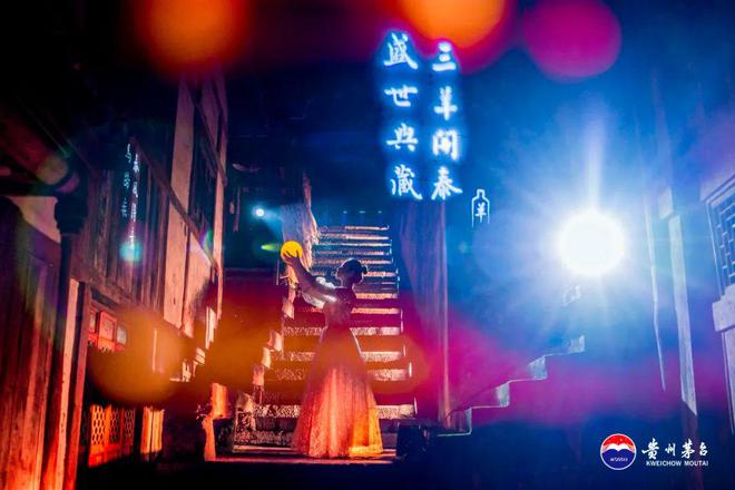 发布会的起点在位于中国酒文化城侧门的羊叉街,从这里进入“巽风之门”,沿着147级台阶拾级而下,“月光使者”以原创话剧引导着大家回顾茅台生肖酒从第一瓶马茅到刚刚从i茅台下架的虎茅的发展历程,穿过“月光之门”进入“茅酒之源”1号车间与最新的兔茅相承接。