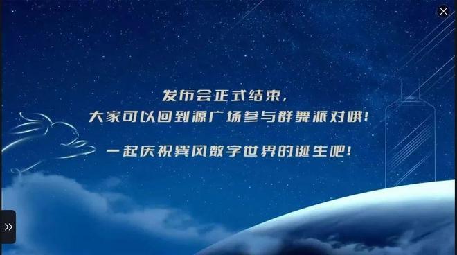 59万巽风“原住民”通过手机终端进入数字世界中的第二会场源广场、第三会场恒兴烧房遗址,在数字孪生技术生成的三位虚拟人铱风、小巽、三石的陪同与引导下,他们在这里观产品、赢奖品、赏表演、看烟花。