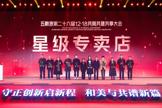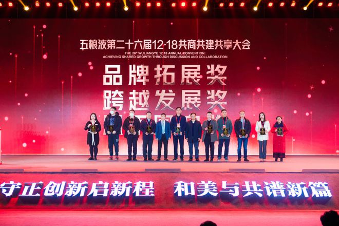 大会现场,对共建共商的经销商们,五粮液给予了至高无上的荣誉同时还共享了丰厚的奖励。大会通报了2022年度五粮液优秀运营商表彰奖励,五粮液股份公司副董事长张宇宣读表彰文件和奖励决定,与会领导分别颁发了“星级运营商奖”“品牌拓展奖”“优秀贡献奖”“突出贡献奖”和“特别贡献奖”等。