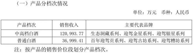 分产品看,以生态洞藏系列为主的中高档白酒实现销售收入12.10亿元,普通白酒销售收入为3.70亿元。