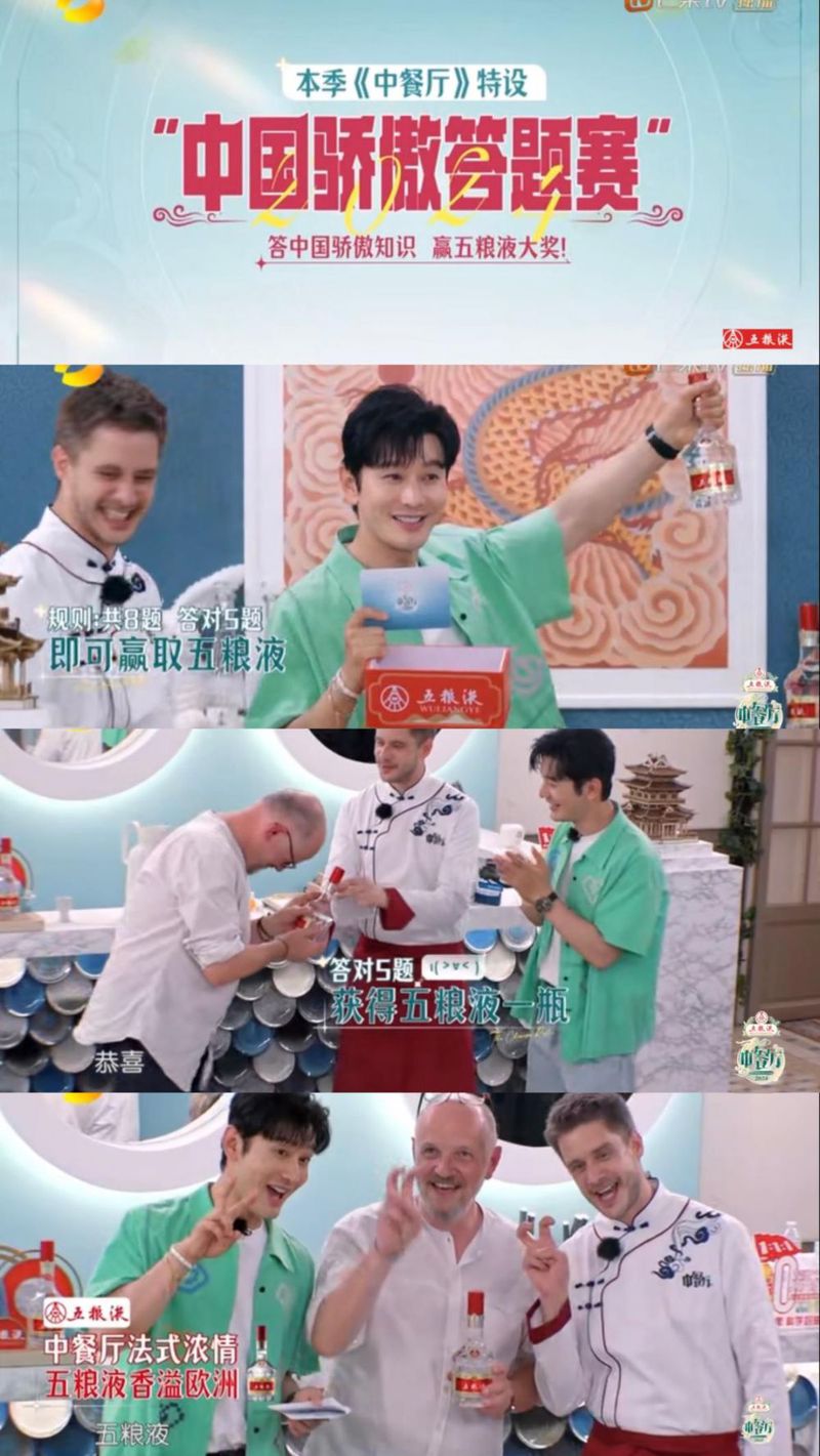 在最新一期中餐厅节目中,为迎合奥运主题,特别设置了“中国骄傲答题赛”,前来就餐的消费者答对8题中的5道题目,即可获得一瓶第八代五粮液。在热烈的答题氛围中,美食、美酒、奥运元素得到了巧妙的融合,五粮液也牢牢占据了互动环节的c位。