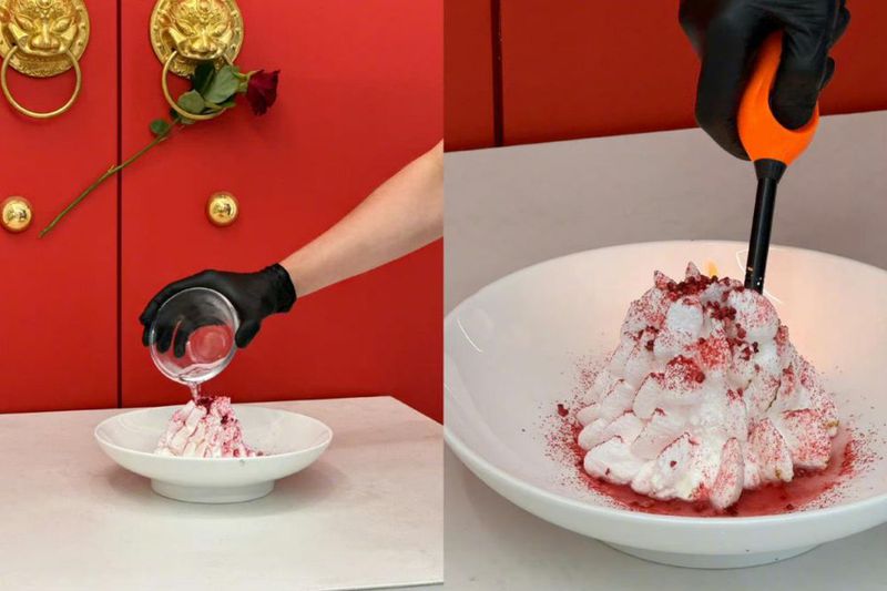 在中餐厅开业当天,合伙人做了一道“五粮液火炬蛋糕”。在火炬蛋糕端上桌后,倒入五粮液,蛋糕上燃起一团小小的火焰,这一独特的就餐体验,也引得不少消费者自发在社交平台上晒视频,分享就餐体验,再一次让美酒与美食一同出圈。