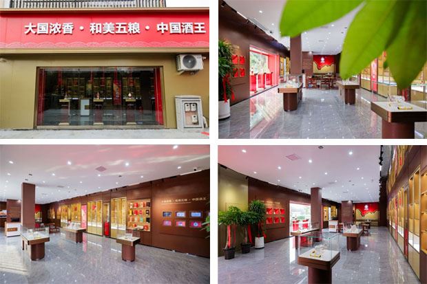 第五代专卖店采用全新的设计语言,整体色调呈现高雅尊贵,店内灯光柔和、布置温馨。布局主要分为:品鉴区、产品陈列区、文化形象墙、大容量产品展示区、老酒展示区等5个区块。不仅设有产品陈列区,还设有文化形象墙、大容量产品展示区、老酒展示区品鉴区。消费者在店内既可以领略五粮液的历史、文化和荣誉,也可以坐下来轻松惬意的品鉴。