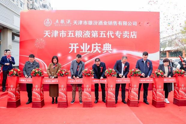 2023年11月8日,五粮液第五代专卖店天津(华苑店)开业庆典活动隆重举行,宜宾五粮液股份有限公司天津营销大区副总经理秦甫、四川五粮液浓香酒有限公司京津营销大区副总经理蒋中军、四川春之秀供应链管理有限责任公司董事长彭光特、四川春之秀供应链管理有限责任公司总经理温进、天津五粮液经销商联谊会副会长 天津中糖华丰实业有限公司五粮液事业部郑伟、民生银行天津分行苏伟杰、天津市雄汾酒业销售有限公司总经理熊少武及酒类经销商和各行业嘉宾到场祝贺。