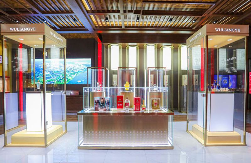 在本届进博会期间,五粮液在人文交流专区设置了专属展台,集中展示了五粮液进博会纪念酒、迪拜世博会中国馆官方指定用酒、中国加入APEC30周年纪念礼盒、博鳌亚洲论坛指定用酒、IFF成立20周年纪念酒等联名产品。而最吸引眼球的,莫过于五粮液与进博会官方联名推出的文创产品“五福进宝”盲盒。