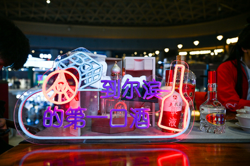 与此同时,五粮液在国内推出哈尔滨冰雪节消费者互动活动,打造冰雕、快闪店、冰宫等设施,筹划接龙、主题快闪、五粮液冻梨特调、冰宫盛宴等创新活动,邀请海内外粉丝共饮“到尔滨的第一口酒”;在成都宽窄巷子,以第八代五粮液酒瓶拼叠而成的5.5米巨型“大熊猫”惊艳全场,让来到中国的海外友人感受到“熊猫+白酒”的双重中国文化熏陶……