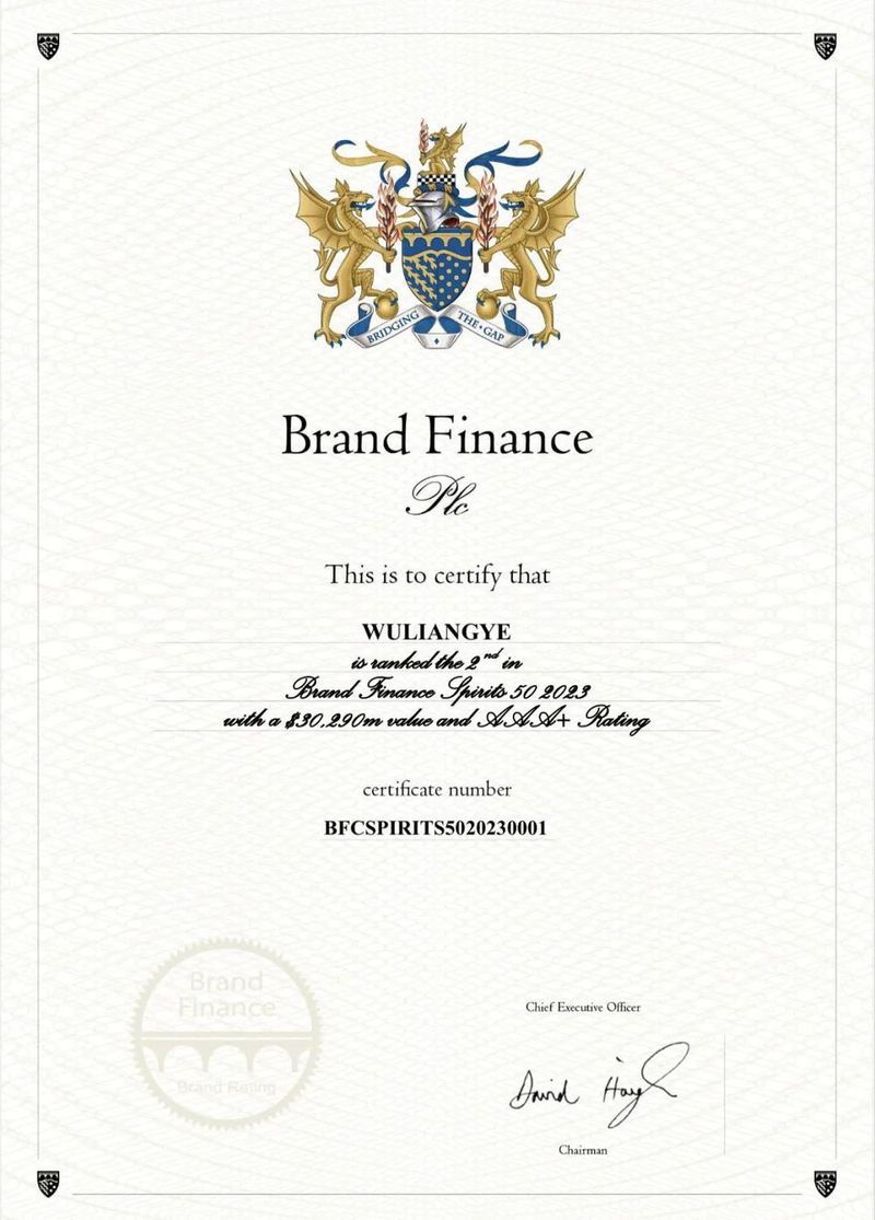 7月28日,英国Brand Finance发布《Brand Finance2023年度全球最具价值烈酒品牌50强》榜单,含全球啤酒榜50强、全球烈酒榜50强与全球红酒榜15强三大榜单。在《2023年全球最具价值烈酒品牌榜》中,五粮液以302.90亿美元的品牌价值排名第二,同比增长5%;品牌强度指数(BSI)得分为89.8分,品牌强度评级达全球酒类品牌强度最高级AAA+。