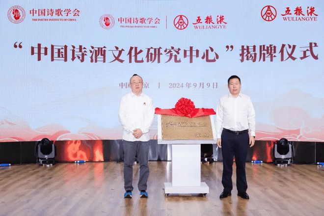 仪式现场,“中国诗歌学会·五粮液公司战略合作签约仪式”在一众嘉宾的见证下盛大进行。“中国诗酒文化研究中心”正式揭牌,并公布了首批顾问:中国当代女诗人、作家,朦胧诗派代表舒婷;当代著名作家、中国文史馆馆员梁晓声;第十四届全国政协委员,四川省作家协会主席、中国作协副主席阿来;北京师范大学博导,长江学者,北京师范大学国际写作中心执行主任张清华;南京大学新闻传播学院/历史学院教授、博士生导师,南京大学南雍学者特任教授韩丛耀。