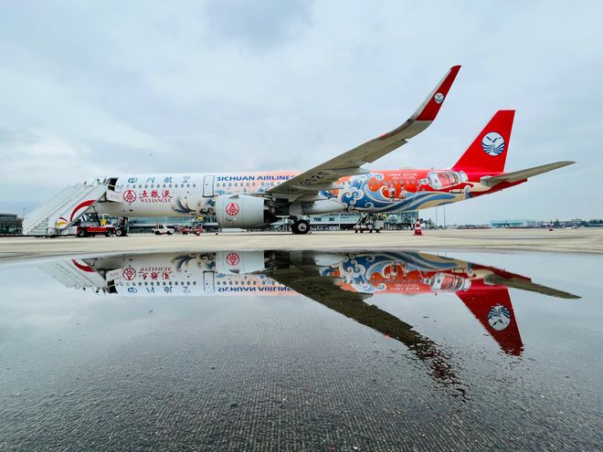中秋节前夕,五粮液与四川航空联名打造的新A321wifi飞机,在9月24日“2023五粮液云上中秋主题航班”正式起飞。执行航班的飞机身披全新“五粮液”主题彩绘,融入经典五粮液、第八代五粮液等核心元素,实现更高辨识度、更具记忆点的品牌展示和文化表达。