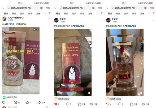 微酒沿着多个平台的讨论区顺藤摸瓜,找到多位网友进行了采访。据网友介绍:2023年春晚,五粮液通过4轮抽奖,向全球观众送出了总价值一亿元的五粮液明星产品,此次晒单的五粮液产品便是网友们收到的“五粮液兔圆圆”。