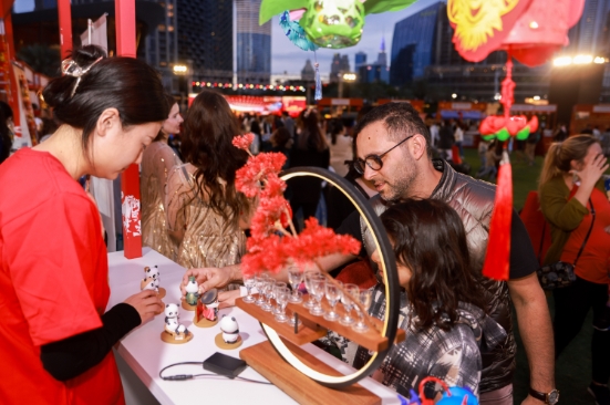在阿联酋迪拜2024年春节庆祝活动上,五粮液精心布置的展位,向当地民众展示了中国白酒深厚的历史底蕴和独特魅力,并带来剪纸艺术、川剧变脸等多种非遗艺术项目,让中华传统文化在异国他乡绽放光彩。