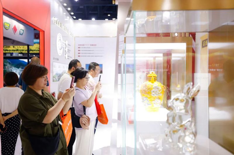 丰富的展品引来观众频频拍照留念,对五福熊猫、和美中国等文创酒频频发出赞叹。一位来自福建的观众询问是否可以购买五粮液·和美中国中福建的单瓶,她表示:“和美中国系列把每个省市区的特色融入到酒瓶设计中,作为福建人很想拥有一瓶代表家乡的五粮液。”