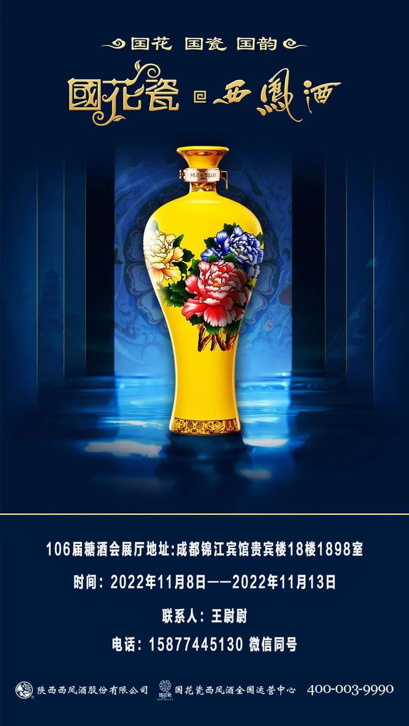 11月8日至11月13日,国花瓷西凤酒将携系列核心产品,参加2022年成都糖酒会。本次展会也是首次春、秋两会合并举办,规模空前,预计参展厂商总数将超过5500家。