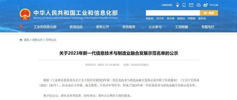 据悉,2023年新一代信息技术与制造业融合发展示范围绕深化新一代信息技术与制造业融合发展,聚焦“数字领航”企业、两化融合管理体系贯标、特色专业型工业互联网平台等方向,遴选一批标杆示范项目,探索形成可复制、可推广的新业态和新模式,为推进新型工业化发展明确路径和方向。