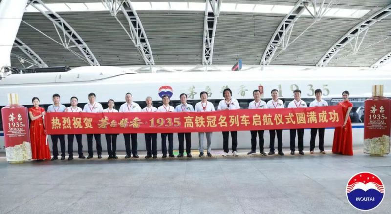 活动开展当天,广州、贵阳、南京、青岛、西安五个城市同步举行茅台酱香·1935高铁冠名列车启航仪式。在崛起的“中国速度”中诠释茅台1935焕新的风貌,彰显致力于引领茅台酱香系列酒高速、健康、高质量发展的愿景。茅台1935这张靓丽的“流动名片”将搭乘中国高铁,向美出发、向美前行,带给消费者更美的体验。