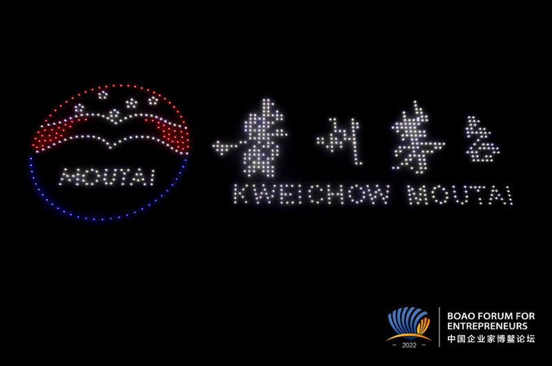 图为“喜相逢·茅台1935”之夜的无人机表演。