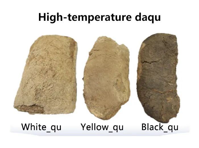 高温大曲是酱香型白酒酿造的重要原料,是酱香风味形成的关键因素之一。传统高温大曲生产在开放的环境下进行,曲房不同位置环境条件的差异造成了发酵过程曲培温度、水分等变化规律不同,最终形成白色、黄褐色和黑色三种外观的成品曲。目前,白、黄、黑大曲主要是通过表观颜色进行区分,且在酱酒生产中对三种类型大曲的使用多依靠经验。