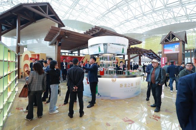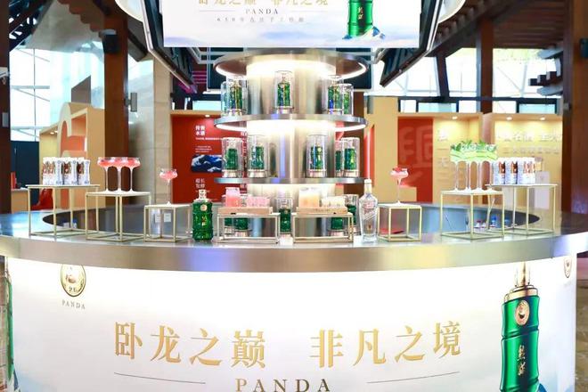 展厅左侧陈列着全兴大曲全系列经典产品;右侧突出呈现樽系列产品及产品背后的四大独有酿酒工艺和三次荣获国家金奖的卓越品质;而正前方绿意盎然的熊猫酒正以高端格调诠释“卧龙之巅 非凡之境”的白酒美学。