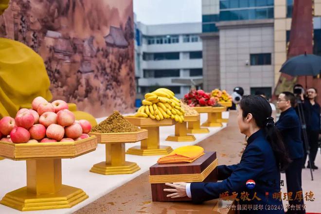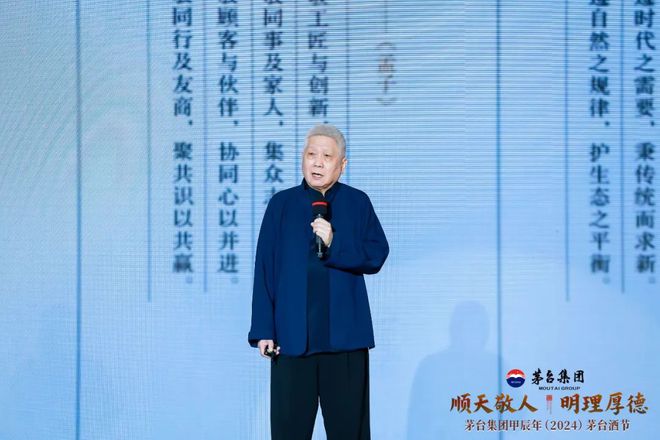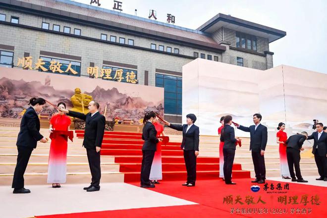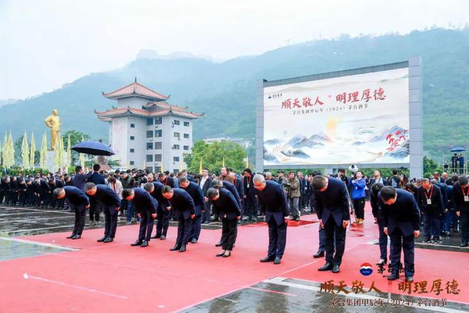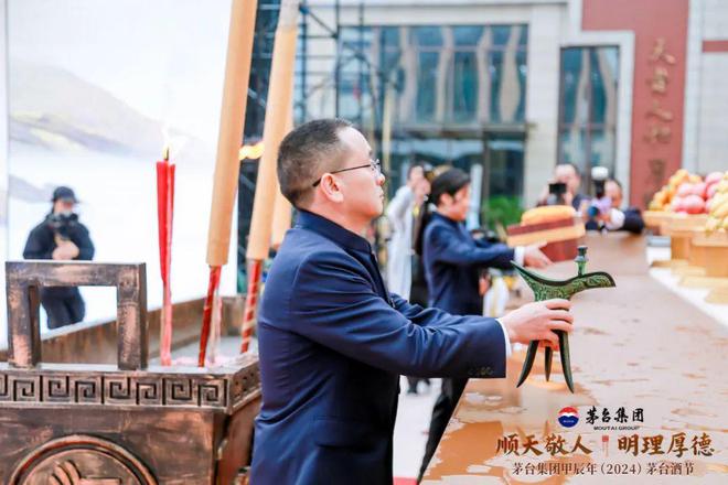 “金风浩荡,天远气清。茫茫寰宇,旨酒其醇……聚酿者之心,传酿酒之法,弘佳酿之志,扬茅台之名。”在敬献仪式司仪、茅台集团公司党委副书记、工会主席高山抑扬顿挫的《茅台赋》中,“顺天敬人 明理厚德”茅台集团甲辰年(2024)茅台酒节正式开启。