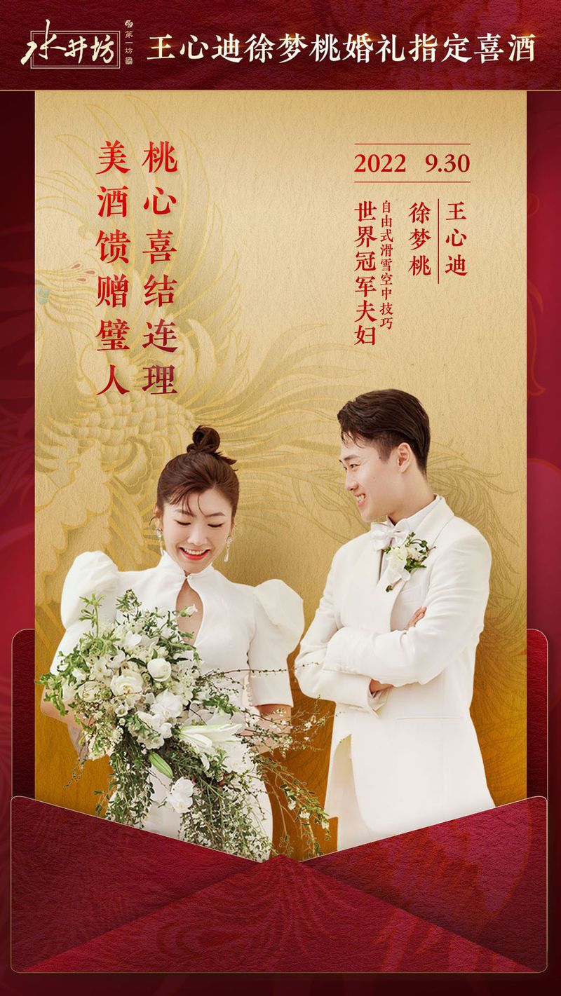 在这场冠军婚礼中,水井坊井台作为徐梦桃、王心迪婚礼指定喜酒,以新意敬心意,见证了两位新人的幸福时刻,也传递了亲朋对他们爱情永恒的美好祝愿。